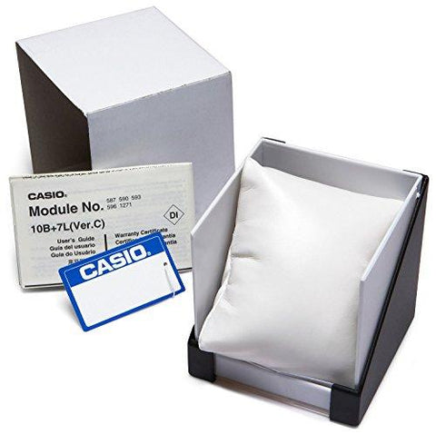Details: Resin Glass Water Resistant Case / bezel material: Resin Resin Band LED light 1/100-second stopwatch Measuring capacity: 59'59.99" Measuring modes: Net time, split time, 1st-2nd place times Daily alarm Hourly time signal Auto-calendar (28 days for February) 12/24-hour format Regular time keeping: Hour, minute, second, pm, date, day Accuracy: ±30 seconds per month Approx. battery life: 7 years on CR2016 Size of case: 38.2 X 35.2 X 8.5 mm total weight: 21 g