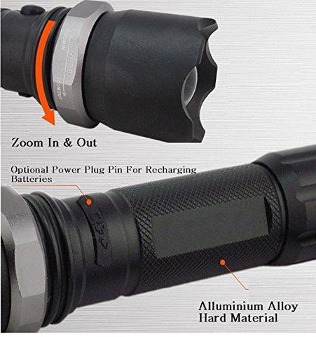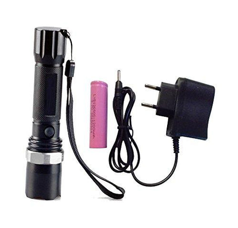 Details: About Product It is a super power torch with high quality, great power and internal booster circuit creates its high efficiency working. This zoom focus torch has Cree Technology Lamp with 500Lumens Brightness. Waterproof Aluminium Alloy Construction and design can make use in any environment and weather. The high power rechargeable battery type 18650 3.7v with 1200mAh capacity makes your torch use for long hours without required charging frequently. Best use to carry everyday for camping, hiking, night riding, caving, hunting, outdoor projects, picnic, travelling, fishing. Etc