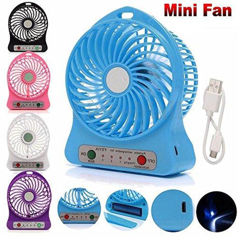 GKP Products ® 3 Speeds Electric Portable Mini fan Rechargeable Desktop Fan Battery and USB Charge Cable